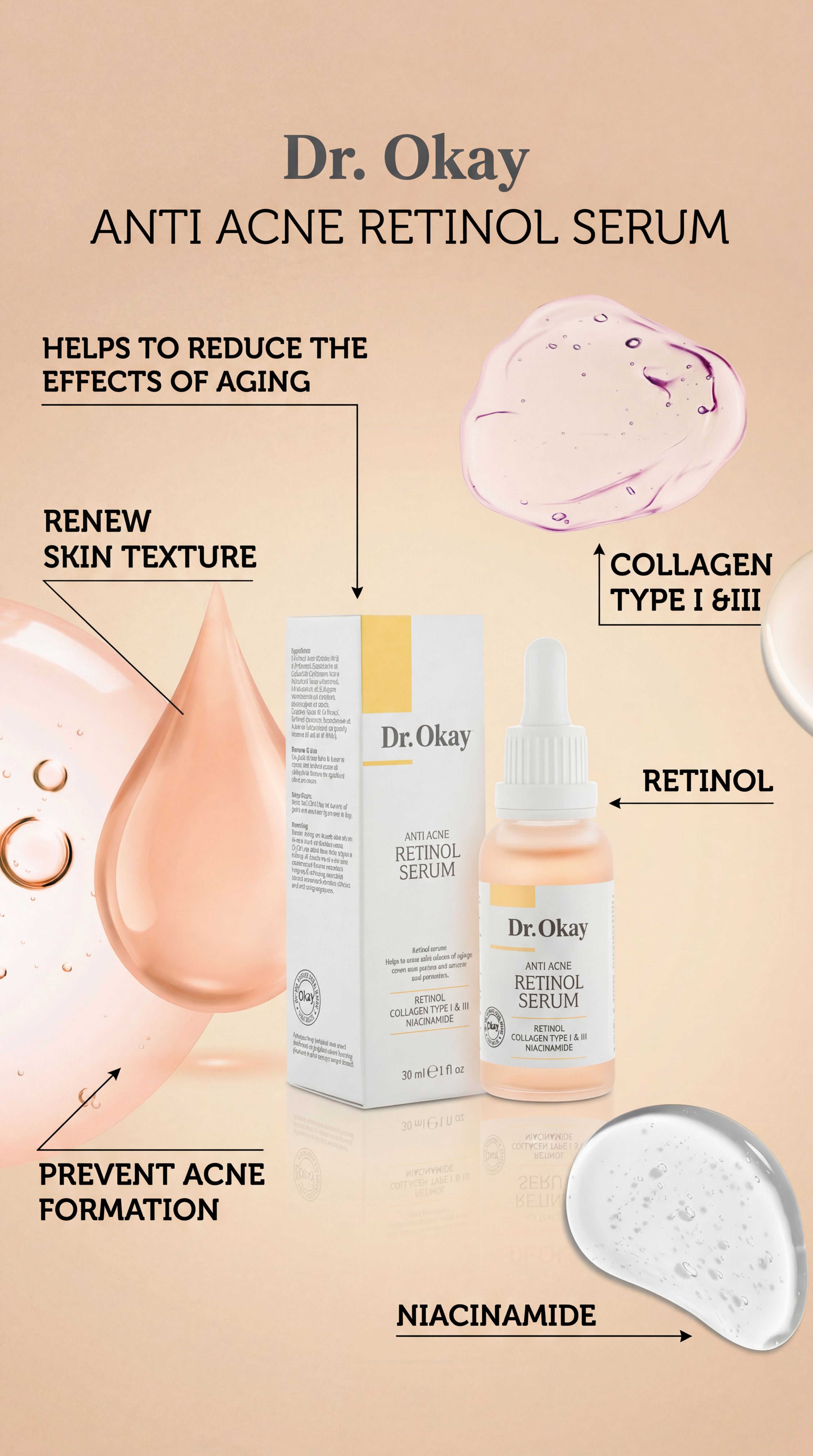 Dr. Okay oferă soluții eficiente, bazate pe o înțelegere profundă a nevoilor pielii și susținute de date științifice. Produsele noastre sunt dezvoltate ținând cont de obiceiurile consumatorilor și de nevoile individuale, având un focus clar pe probleme specifice și rezultate garantate. Fiecare formulă este creată în urma unor teste riguroase, analize detaliate și studii clinice. Pentru că cea mai pură și sănătoasă stare a pielii tale este posibilă doar prin îngrijire atentă, combinată cu știința.